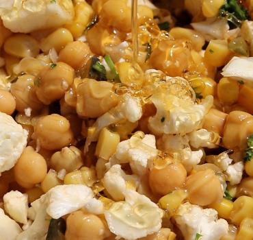 Salade végétarienne de chou-fleur et pois chiches aux cornichons marinés