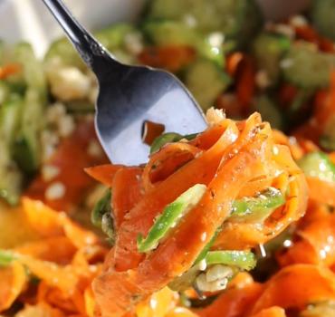 Salade fraîche de concombres et carottes, vinaigrette feta-aneth