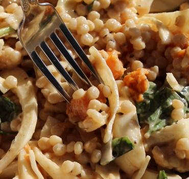 Salade de couscous perlé, légumes rôtis et vinaigrette crémeuse